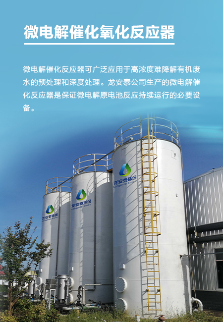 可廣泛應(yīng)用于高濃度難降解有機廢水的預(yù)處理和深度處理。龍安泰公司生產(chǎn)的微電解催化反應(yīng)器是保證微電解原電池反應(yīng)持續(xù)運行的必要設(shè)備。