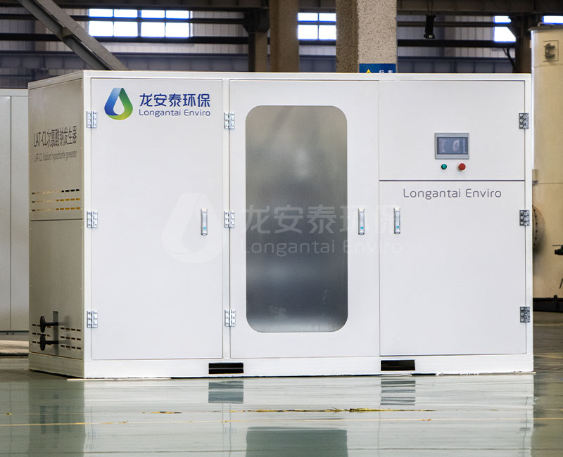 是一種新型的用于在線生產(chǎn)次氯酸鈉溶液的設(shè)備。適用于各種需要采用次氯酸鈉進行消毒的場合。其工作原理是:氯化鈉溶液在一定的槽電壓作用下,在電解槽
